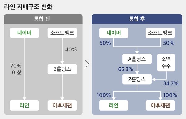 현재 네이버의 사업은 크게 자체적인 사업과 일본에서 운영하는 사업으로 나누어 볼 수 있습니다. 우선 일본에서 운영하는 사업을 살펴보자면, 네이버는 소프트뱅크와 50대 50의 지분으로 A홀딩스라는 조인트벤처를 설립했습니다. A홀딩스가 Z홀딩스를 65.3% 보유하고, Z홀딩스는 야후 재팬과 라인을 100% 소유하고 있는 형태이죠. 약 2만 3000명의 임직원과 200개 이상의 서비스를 보유한 일본 최대 규모 인터넷 서비스 기업으로 거듭난 Z홀딩스는, 일본 및 아시아 기반의 글로벌 AI 테크 기업을 목표로 한다고 밝혔는데요. 핵심 사업인 검색·포털, 광고, 메신저 사업을 중심으로 운영하고, 커머스, 로컬·버티컬, 핀테크, 공공의 4개 분야를 새로운 집중 사업으로 육성할 것으로 예상됩니다.