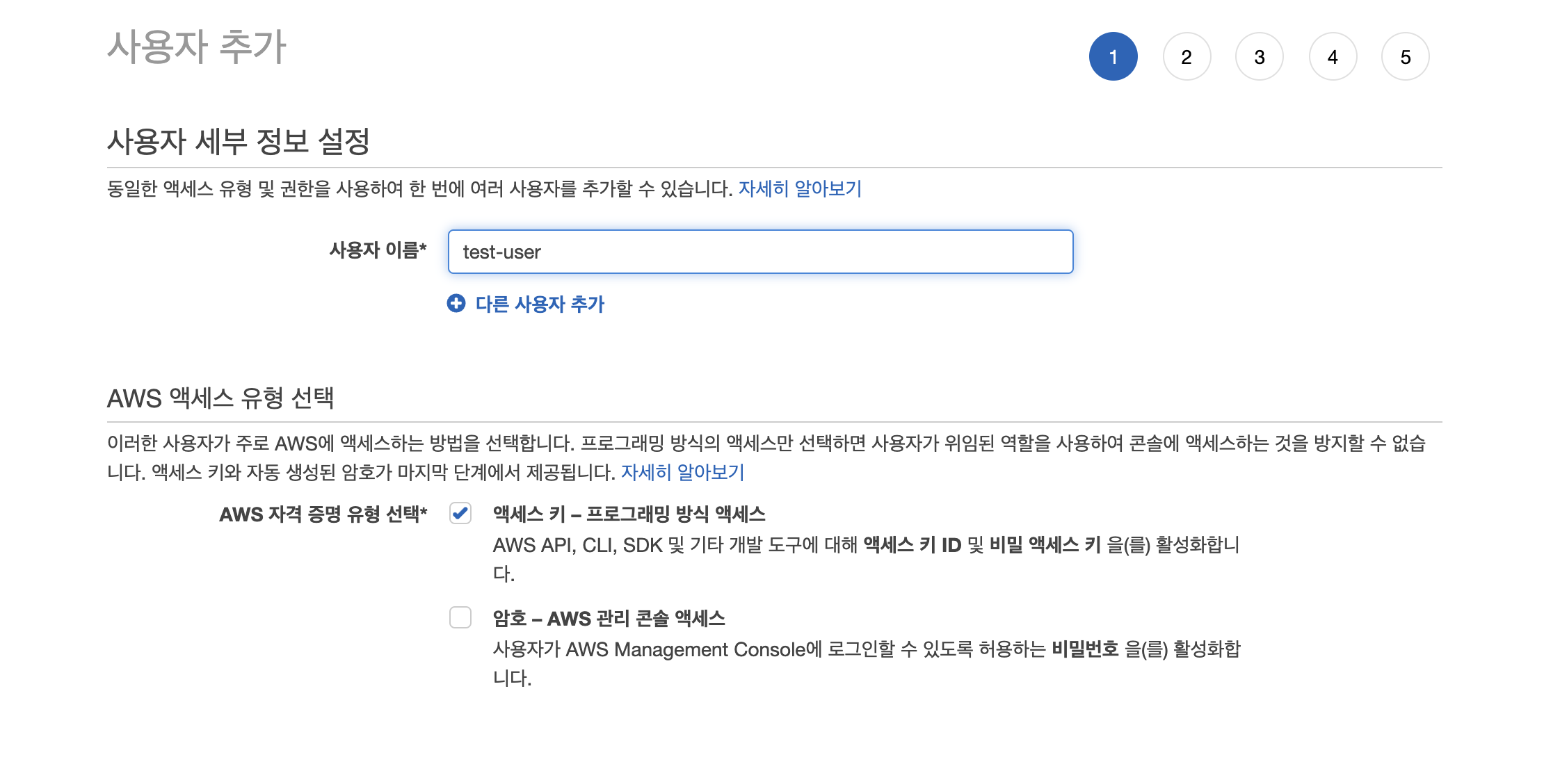 이제는 코드에서 사용하기 위해 S3에 접근 가능한 가상의 계정을 만들어보겠습니다.