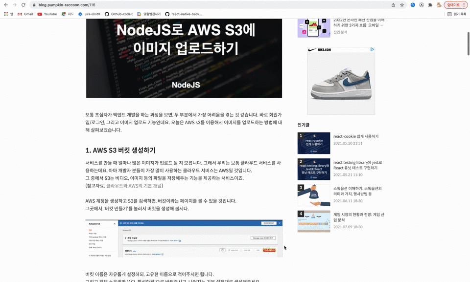 | NodeJS 이미지 업로드 기능 만들기 (AWS S3 활용하기) (0) | 2022.01.30 |