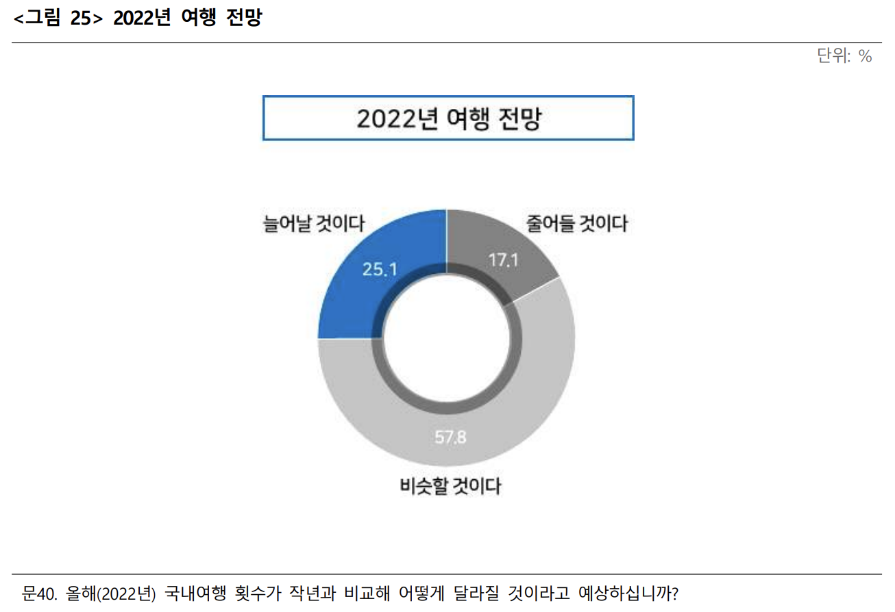 한국문화관광연구원의 조사에 따르면, 사람들은 올해 국내 여행이 증가할 것으로 전망하고 있습니다. 해외여행 역시 2021년 6월에 사이판, 2021년 10월에 싱가포르와 트래블 버블*이 체결되고, 2022년 3월 21일부터 해외 입국자의 자가격리가 면제되는 등 빗장이 조금씩 풀리고 있죠. 세계적으로도 위드 코로나를 시행하는 국가가 많아지고 있으며, 여행 산업이 이전보다 회복될 것은 어느 정도 명확해 보입니다.