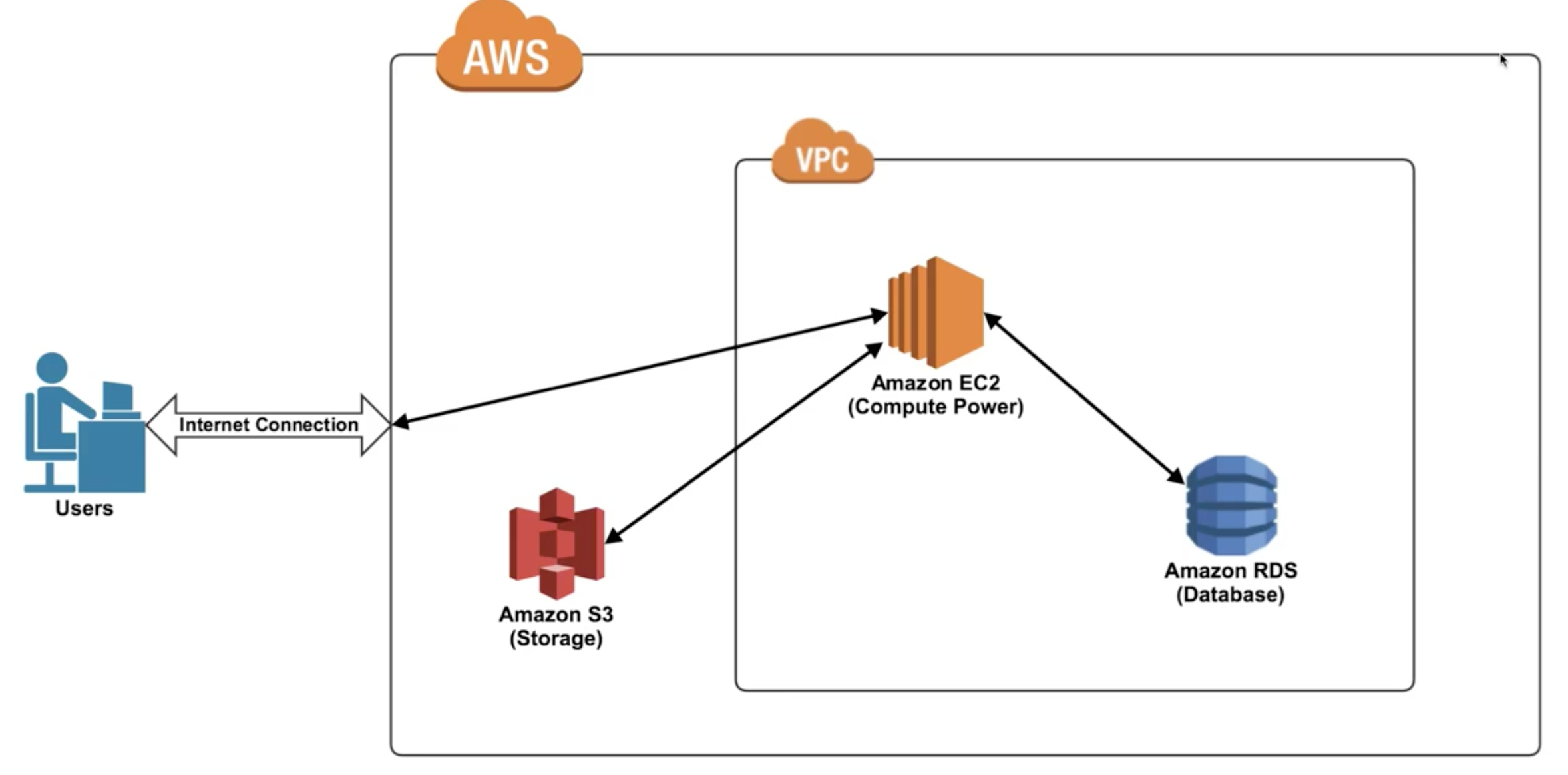 AWS에서 기초적인 서비스들의 개념을 그림으로 나타낸 것이 아래와 같다.