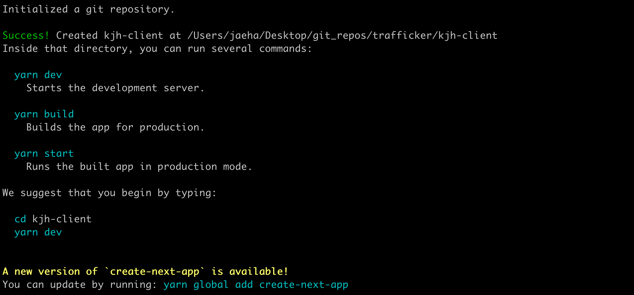 우선 처음 프로젝트를 시작할 때에는 다음과 같은 명령어를 통해 시작하시면 됩니다.