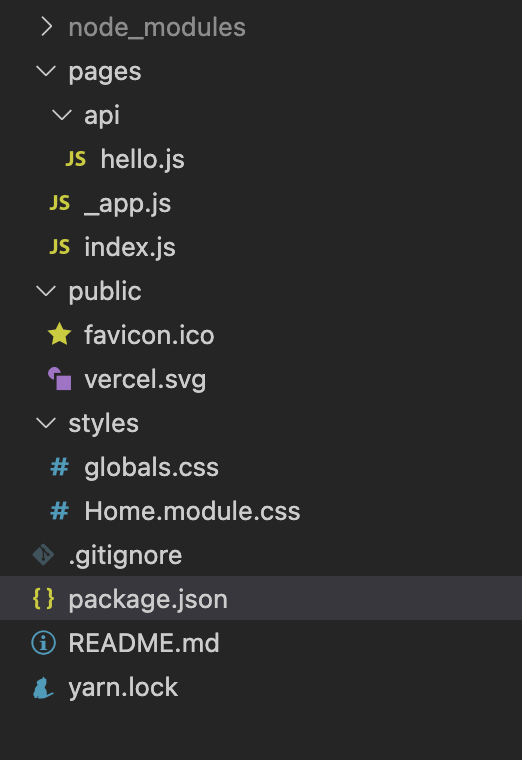 한 번 create-next-app으로 생성된 프로젝트의 폴더구조를 살펴보겠습니다.