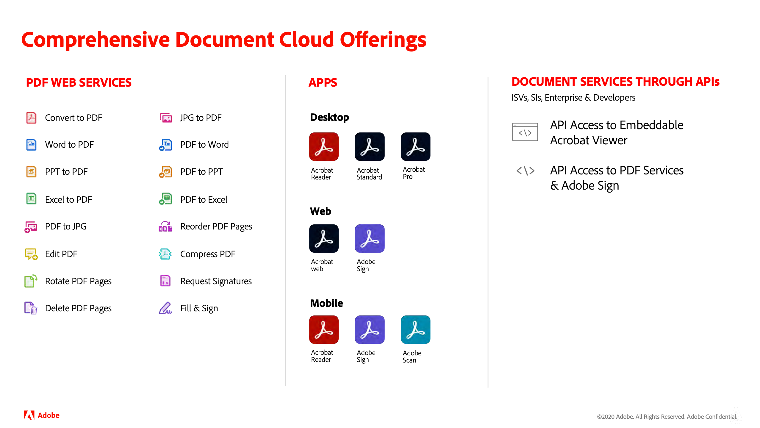 어도비의 또 다른 중요한 제품은 바로 PDF인데요, 어도비는 1993년에 Portable Document Format(PDF)를 시장에 선보이며 어도비 아크로뱃 리더(Adobe Acrobat and Reader) 소프트웨어를 출시했습니다. 그리고 현재 PDF는 국제 규격 인증을 받은 전자 문서 포맷으로 전 세계에서 사용되고 있죠. 어도비는 이렇게 핵심 제품 외에도 꾸준한 신제품 런칭과 다양한 M&A를 통해 서비스를 발전시켜나가고 있습니다.