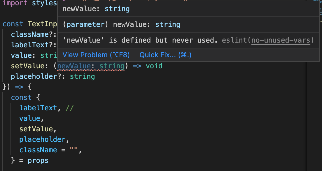 그런데 기본적인 ESLint설정을 해둔 상태라면 다음과 같은 no-unused-vars Lint 에러가 나타납니다.