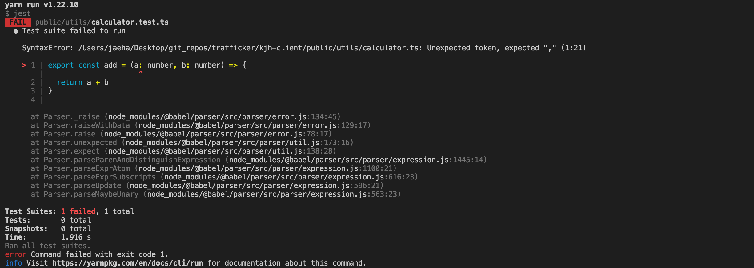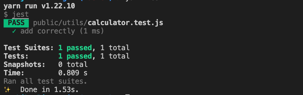 그리고 해당 파일을 테스트하는 calculator.test.js 를 생성해보았습니다.