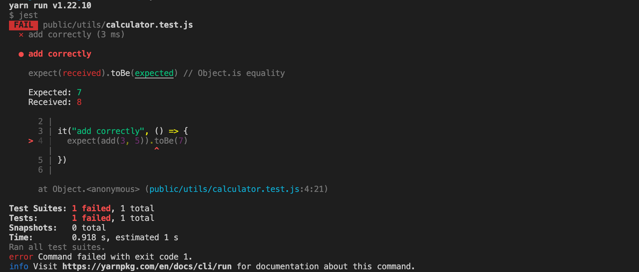 expect(add(3, 5)).toBe(8)