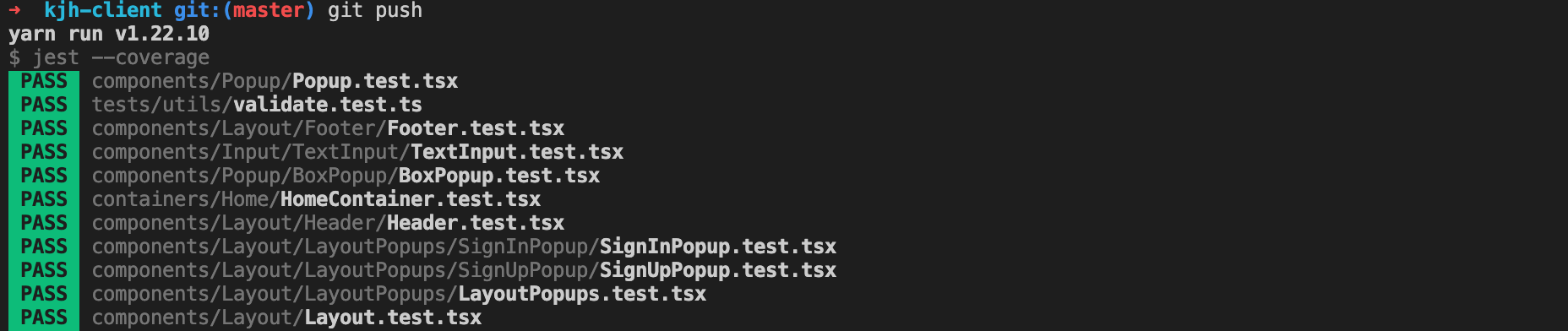 npx husky add .husky/pre-push 'yarn test-coverage'