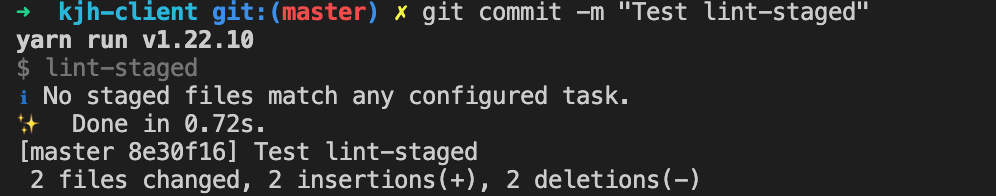 그러나 만약 모든 파일에 대해 검사하기에 오래 걸리거나, 프로젝트 중간에 린트를 추가해서 한 번에 수정되기 원하지 않을 수도 있습니다. 그럴 경우 자신이 수정한 파일만 검사할 수 있도록 하는 lint-staged 패키지가 존재합니다.