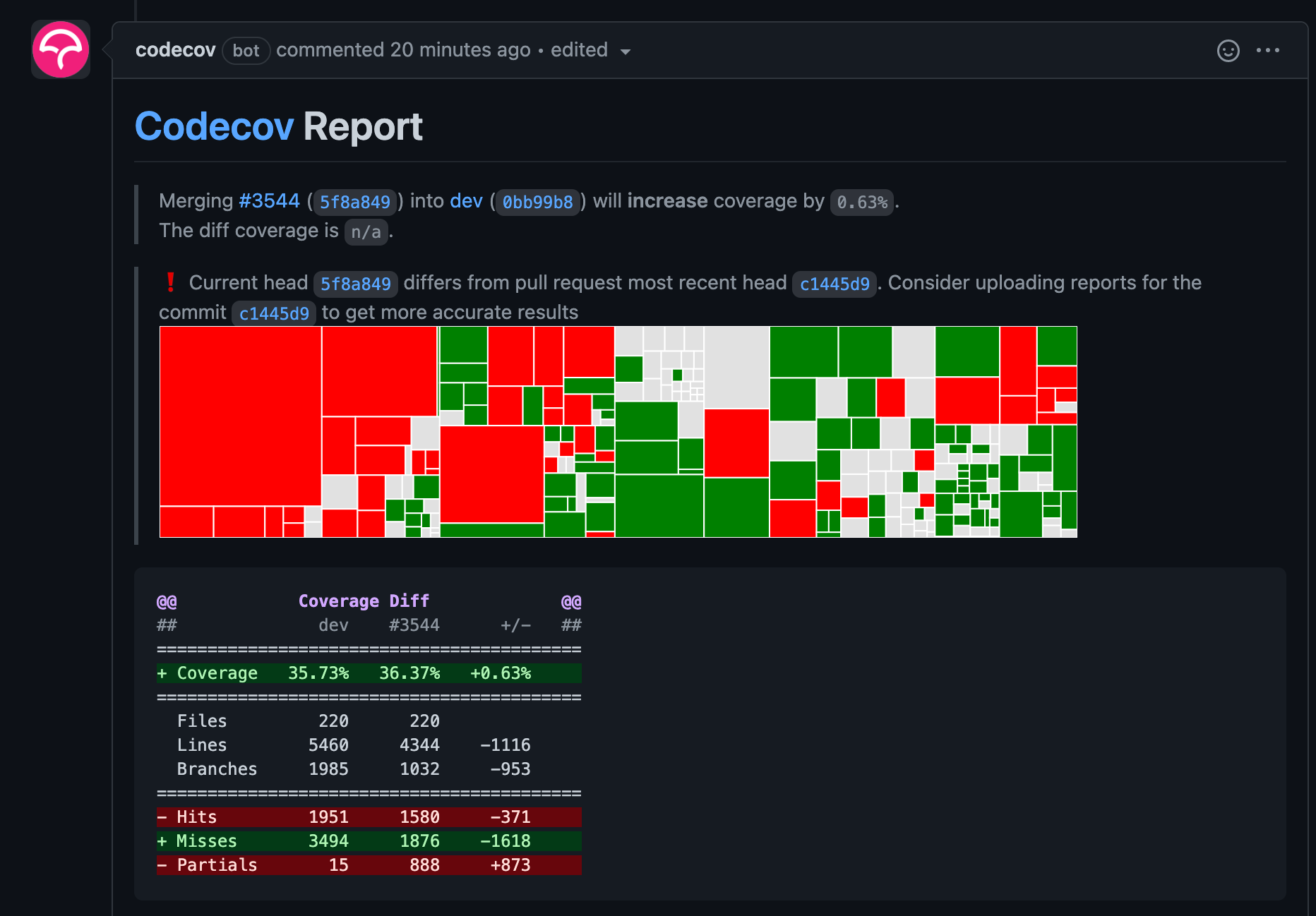 그리고 다시 codecov를 작동하면 리포트가 업로드되고 커버리지가 업데이트 된 것을 확인할 수 있습니다.