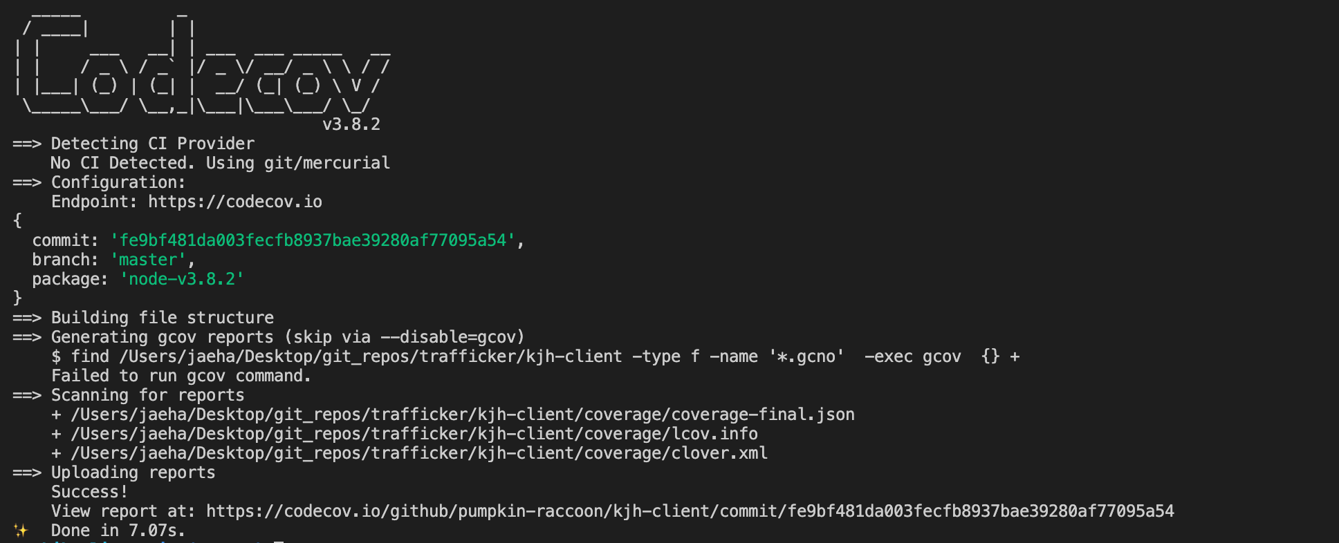 그럼 jest가 돌고나서 codecov가 도는 것을 확인할 수 있을 것입니다.