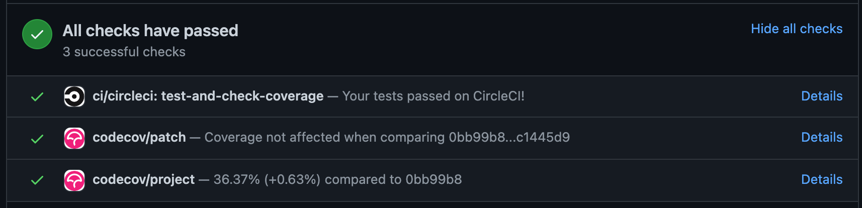 잘 작동하나요? 테스트가 통과되고 circleCI가 패스한다면 성공한 것입니다!