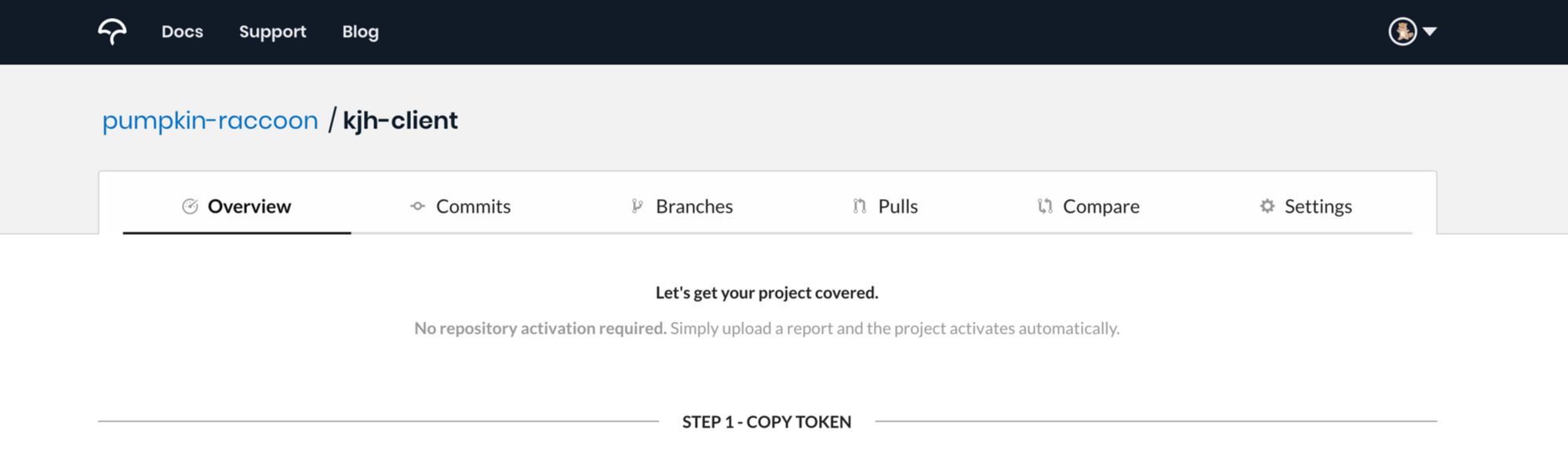 public repo라면 codecov.io의 메인화면 overview 탭이 달라진 것을 확인하실 수 있겠지만, private repo를 사용한다면 아직 한 가지 스텝이 더 남아있습니다. 바로 토큰을 적용해야 하는 것이죠