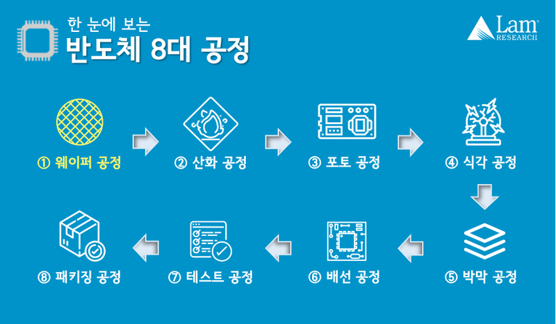 반도체를 생산하기 위해서는 몇 가지 공정을 거쳐야 합니다. 순서대로 살펴볼게요.