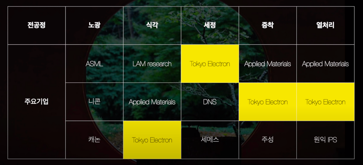 사실 일본의 반도체 산업에 대해 말하면서 중간에 반도체 공정을 설명드린 이유는 일본이 반도체 공정에 필요한 소재, 부품, 장비 산업에서 두각을 나타내고 있기 때문입니다.