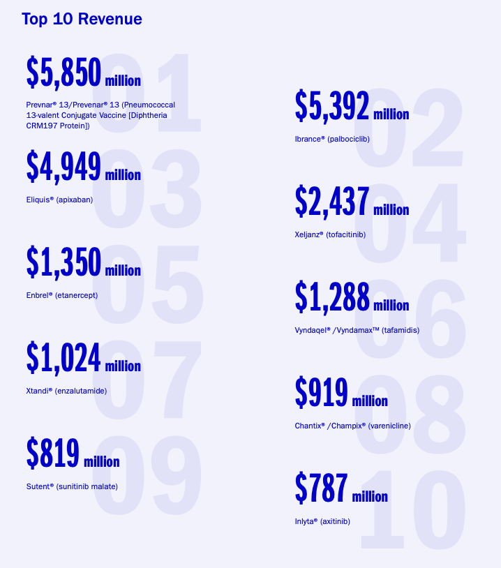 1950년 항생제인 테라마이신(옥시테트라사이클린)을 개발한 것에 이어, 1967년 바이브라마이신(광범위 항생제) 개발도 성공하며 화이자는 글로벌 제약업체의 발판을 마련했습니다. 1980년에는 관절염 치료제 펠덴(프록시캄) 출시를 통해 단일 제품으로만 매출 10억 달러를 달성하며 성공을 이어나갔죠. 이후 화이자는 R&D 투자를 한층 강화해 1990년부터 회사를 대표하는 신약을 쏟아냈는데요. 항우울제 ‘졸로푸트’, 고혈압 치료제 ‘노바스크’, 항곰팡이제 ‘디플루칸’, 전립선 비대증 치료제 ‘카듀라’, 발기부전 치료제 ‘비아그라’ 등이 연거푸 등장한 것입니다. 특히 비아그라는 2000년대 기능장애 의약품 판매량의 90%를 차지할 만큼 엄청난 인기를 누렸으며, 지금도 성행하고 있죠.